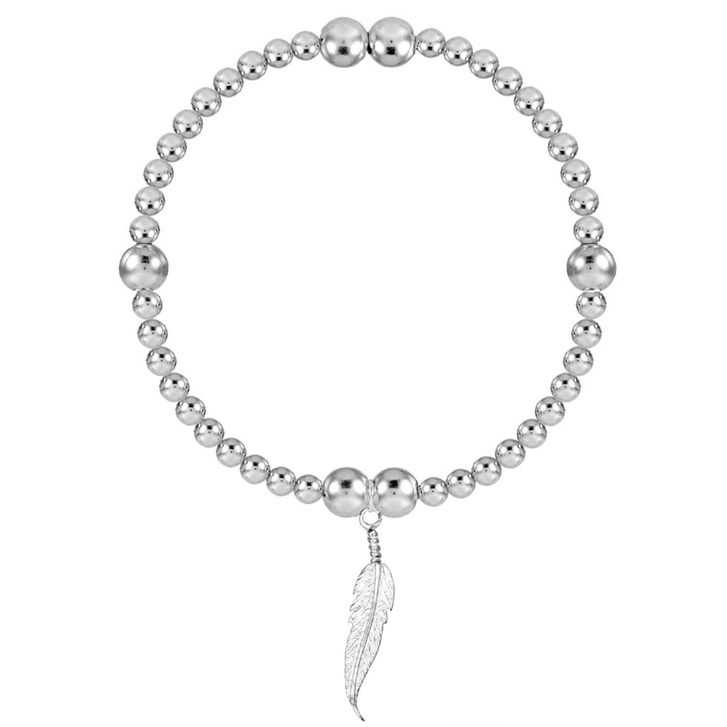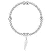 Crafted with 4mm Sterling Silver Beads with a 2cm Angel Feather charm, this comfortable stretch bracelet adds a delicate and refined touch to any look.