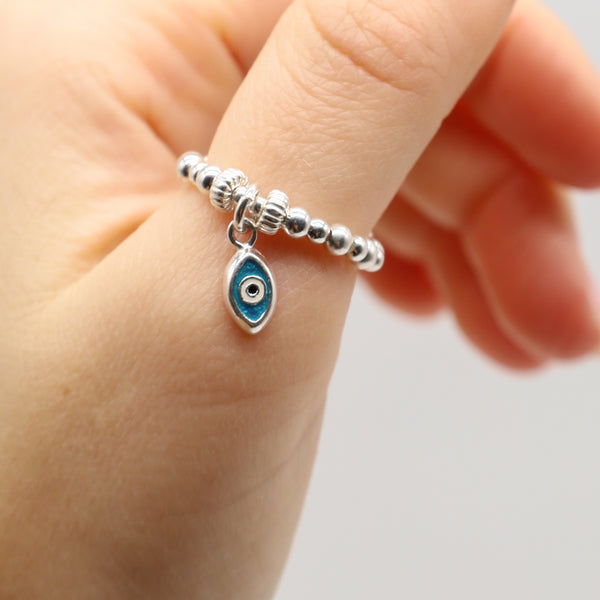 Feel Safe Evil Eye Silver Stretch Ring
