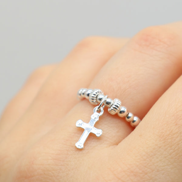 Faith Cross Silver Stretch Ring