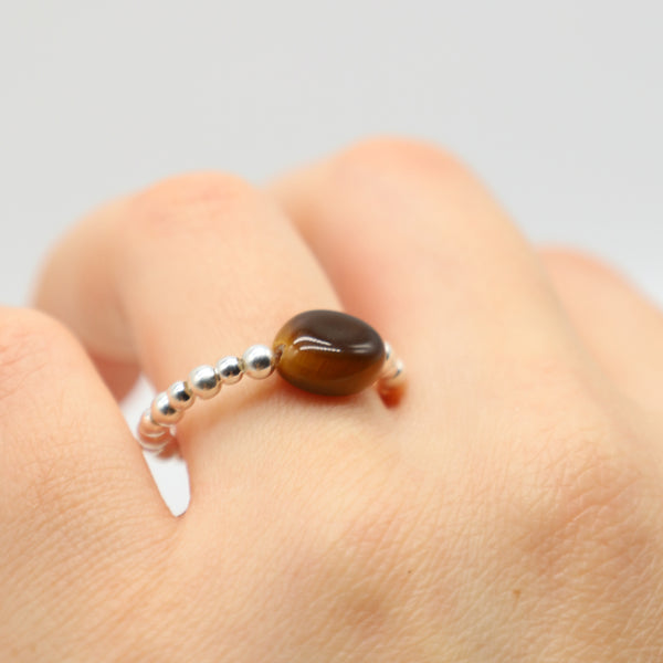 Courage & Protection Tigers Eye Silver Stretch Ring